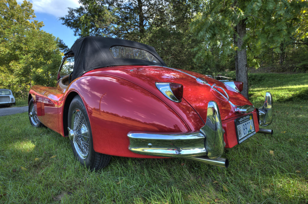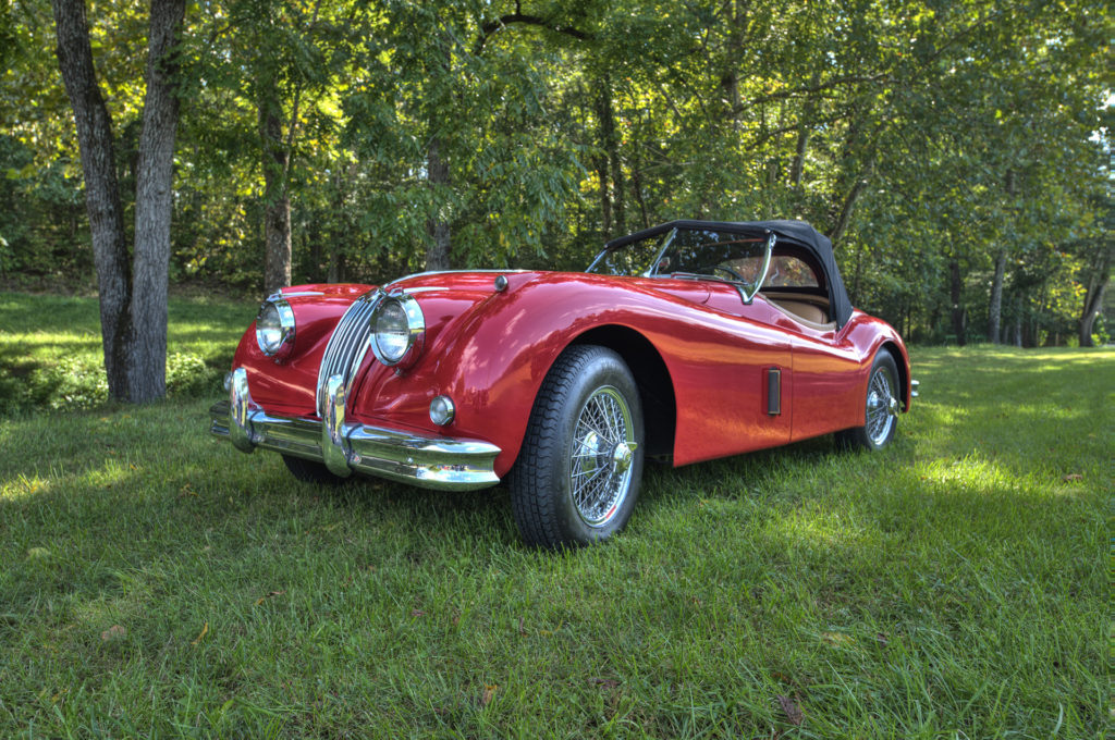 The Jaguar XK140, produced by Jaguar from 1954 to 1957, served as the follow-up to the XK120 sports car. Enhancements comprised expanded interior room, upgraded brakes, the adoption of rack and pinion steering, heightened suspension travel, and the replacement of the older lever arm design with telescopic shock absorbers.