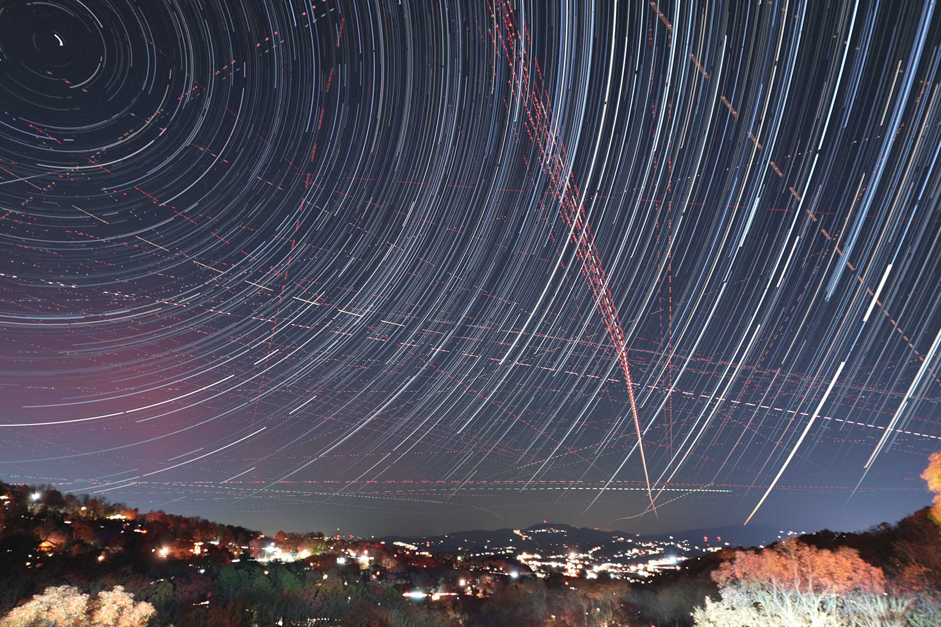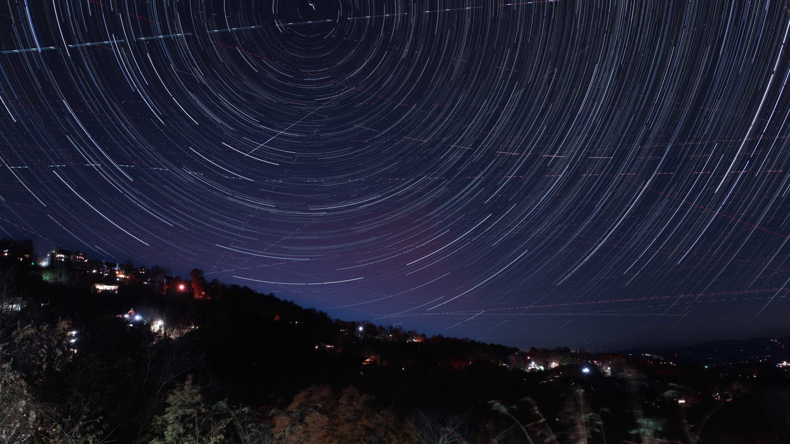 Since I was shooting timelapse, I decided to process the star trails. Lots of air traffic over Sevier County. THis is looking North.
